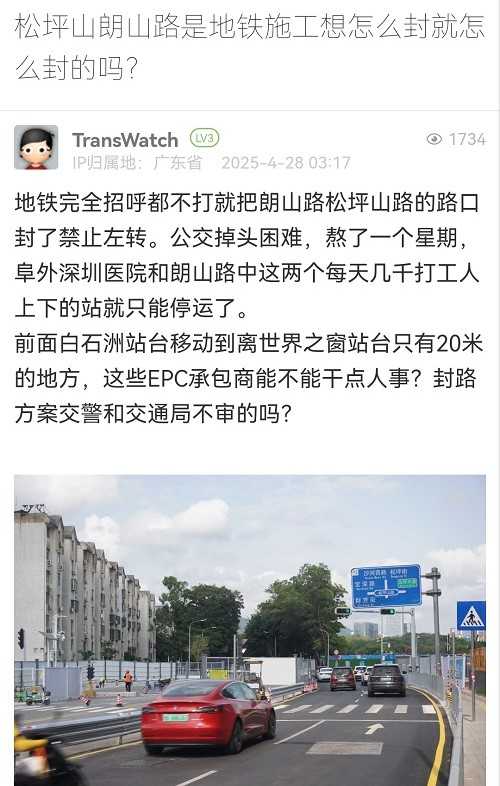 15. 帖文《松坪山朗山路是地鐵施工想怎么封就怎么封的嗎?》