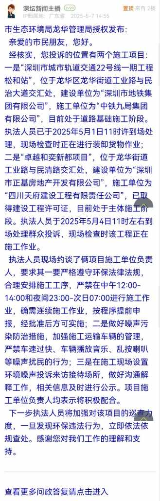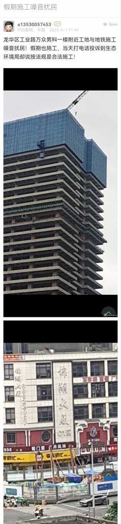 27. 帖文《南山區(qū)龍珠大道與龍珠三路交界工地,持續(xù)三年長期噪音騷擾》