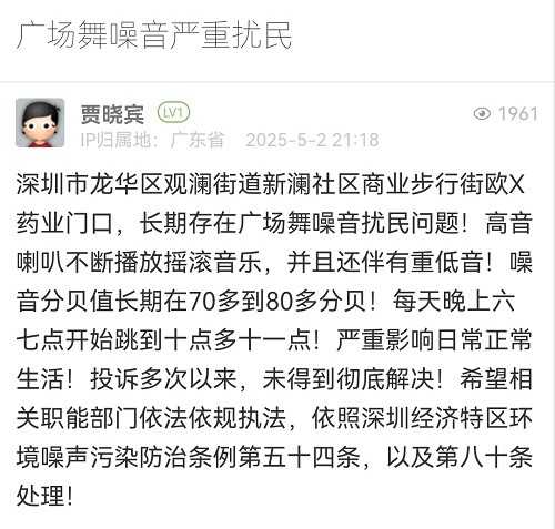 20. 帖文《廣場舞噪音嚴(yán)重擾民》