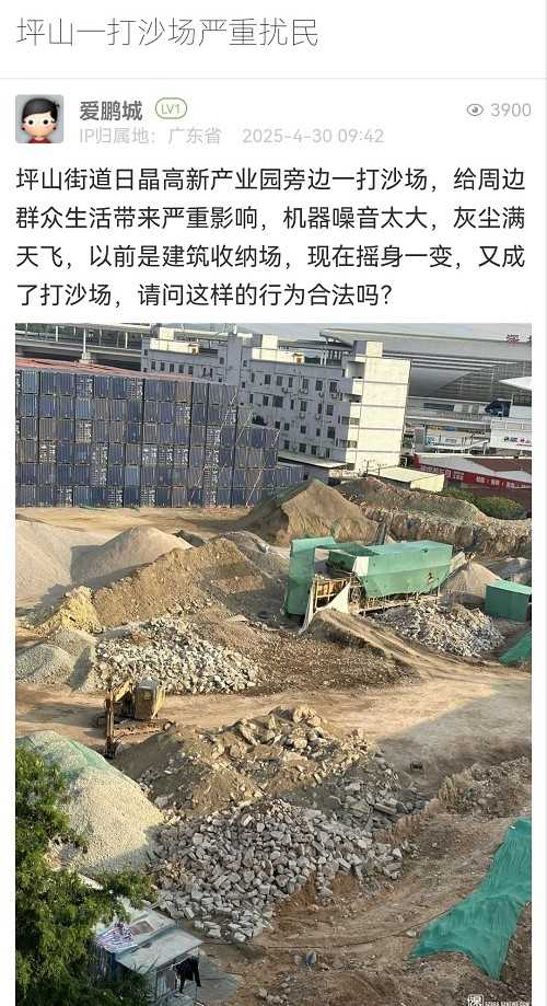19. 帖文《坪山一打沙場嚴(yán)重擾民》
