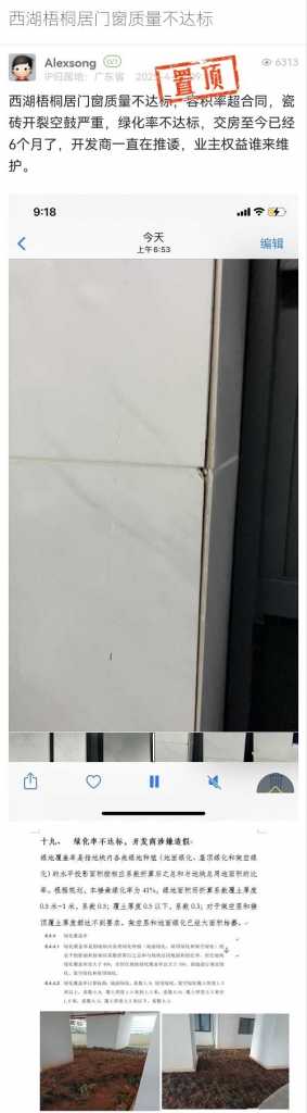 17. 帖文《西湖梧桐居門窗質(zhì)量不達(dá)標(biāo)》
