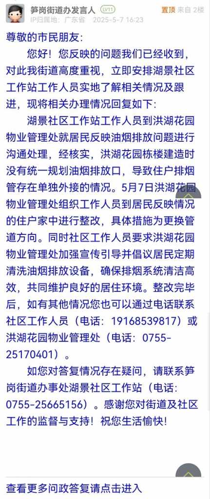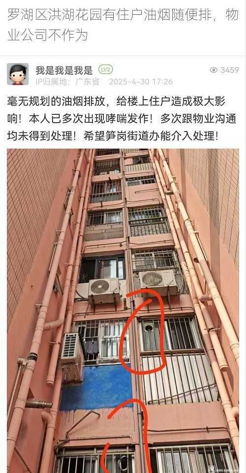 18. 帖文《羅湖區(qū)洪湖花園有住戶油煙隨便排,物業(yè)公司不作為》