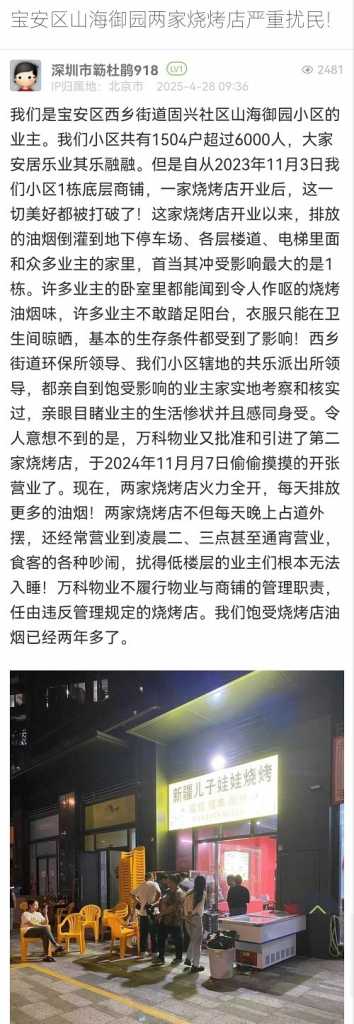2. 帖文《寶安區(qū)山海御園兩家燒烤店嚴(yán)重擾民!》