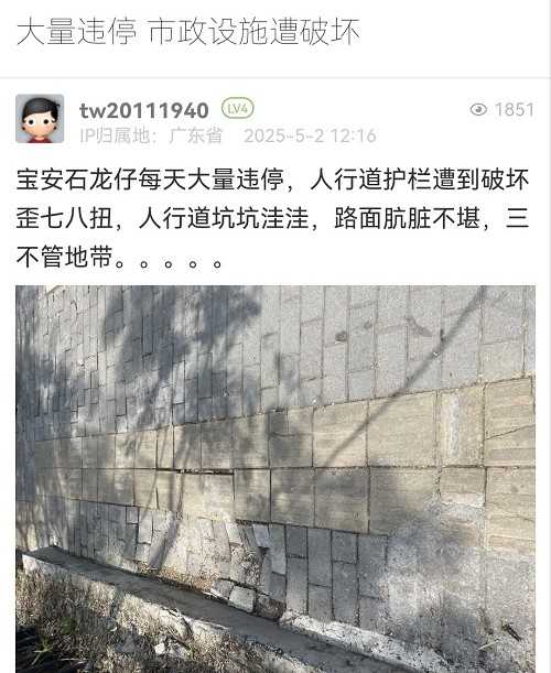 25. 帖文《這里的人行道改造怎么感覺像粗制濫造》