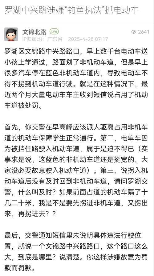 1. 帖文《羅湖中興路涉嫌“釣魚執(zhí)法”抓電動車》