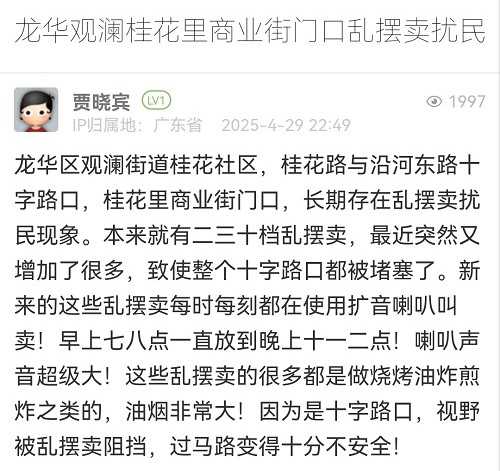 5. 帖文《龍華觀瀾桂花里商業(yè)街門口亂擺賣擾民》