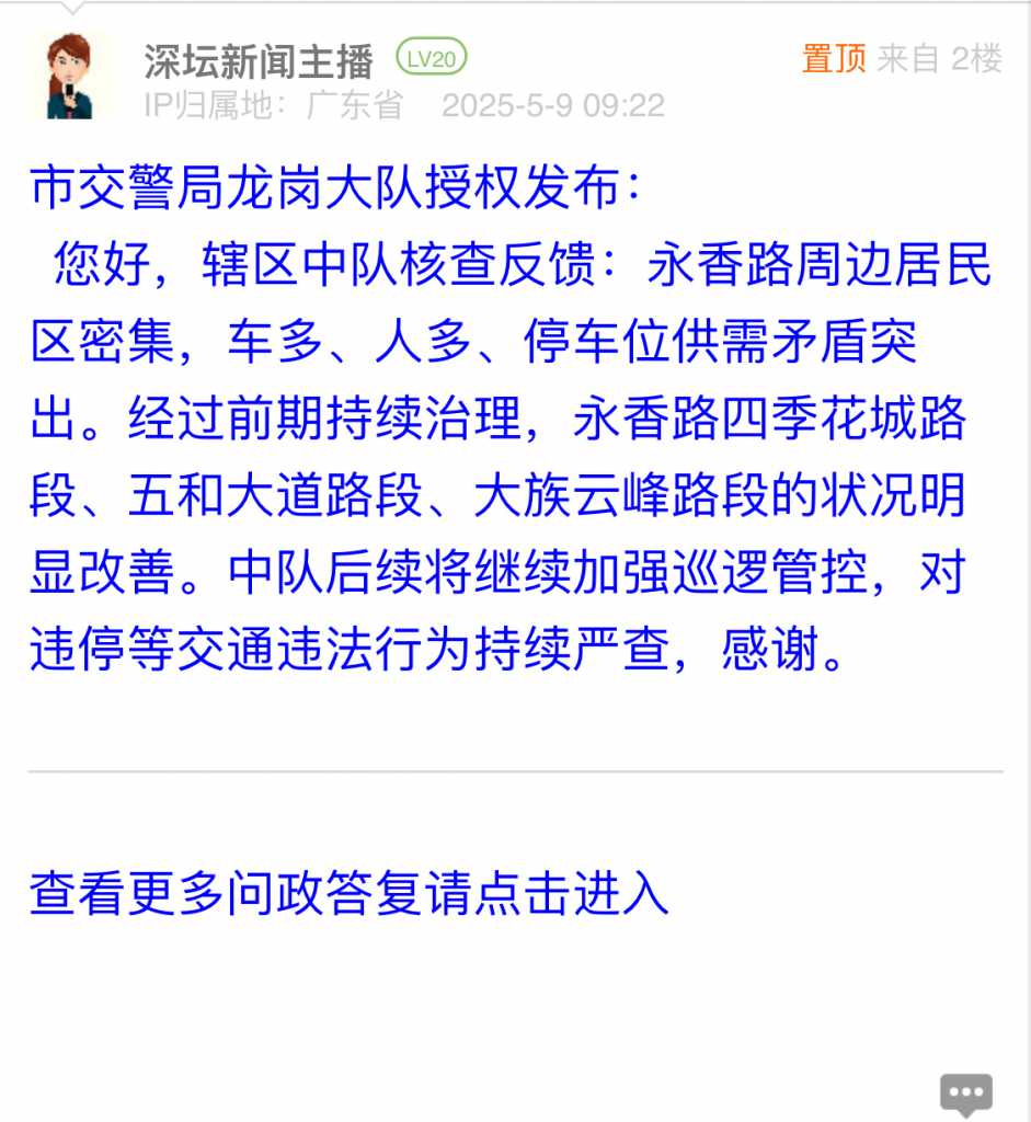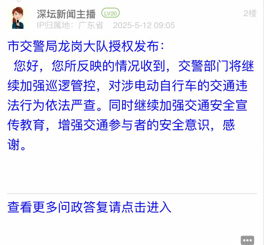 據(jù)統(tǒng)計(jì),2025年5月5日-2025年5月11日,網(wǎng)友在深圳論壇發(fā)布問政類帖文共33篇,得到相關(guān)單位正式回應(yīng)的帖文數(shù)為28篇,本期簡(jiǎn)報(bào)回應(yīng)速度最快的單位:市交警局南山大隊(duì)、寶安區(qū)新安街道辦事處、市交警局龍崗大隊(duì)、市交警局羅湖大隊(duì)。