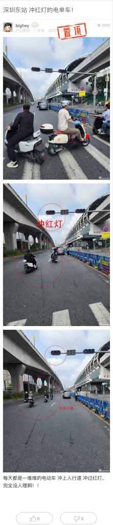 6. 帖文《深圳東站 沖紅燈的電單車!》