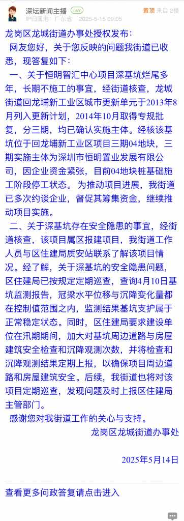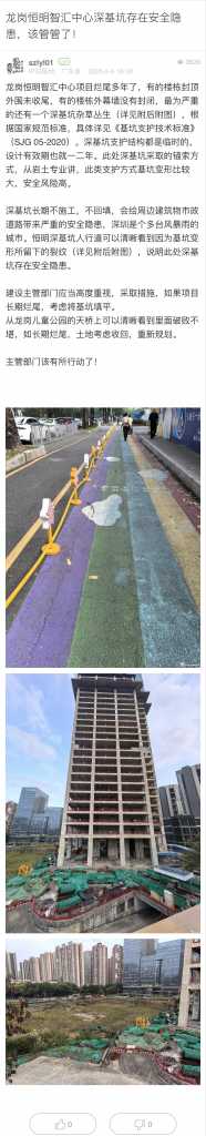 25. 帖文《龍崗恒明智匯中心深基坑存在安全隱患,該管管了!》