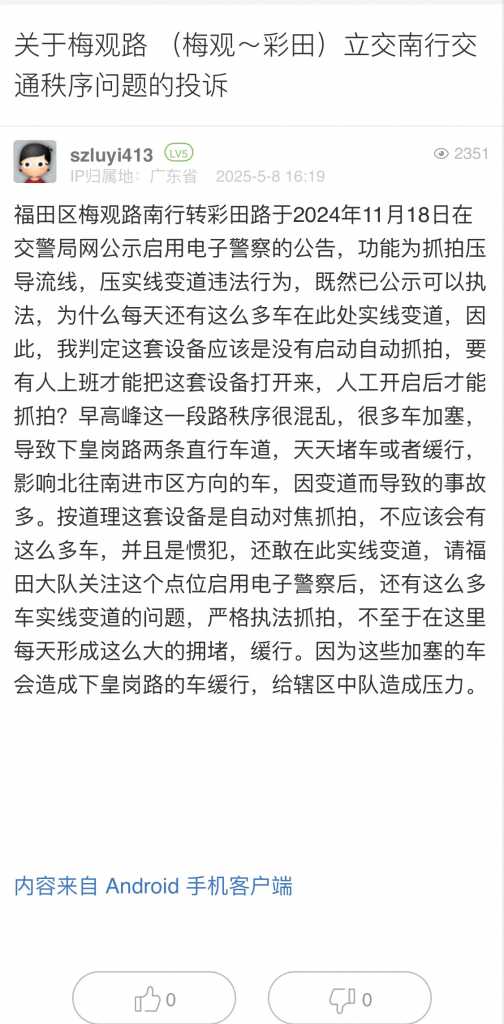 26. 帖文《關(guān)于梅觀路 (梅觀~彩田)立交南行交通秩序問題的投訴》