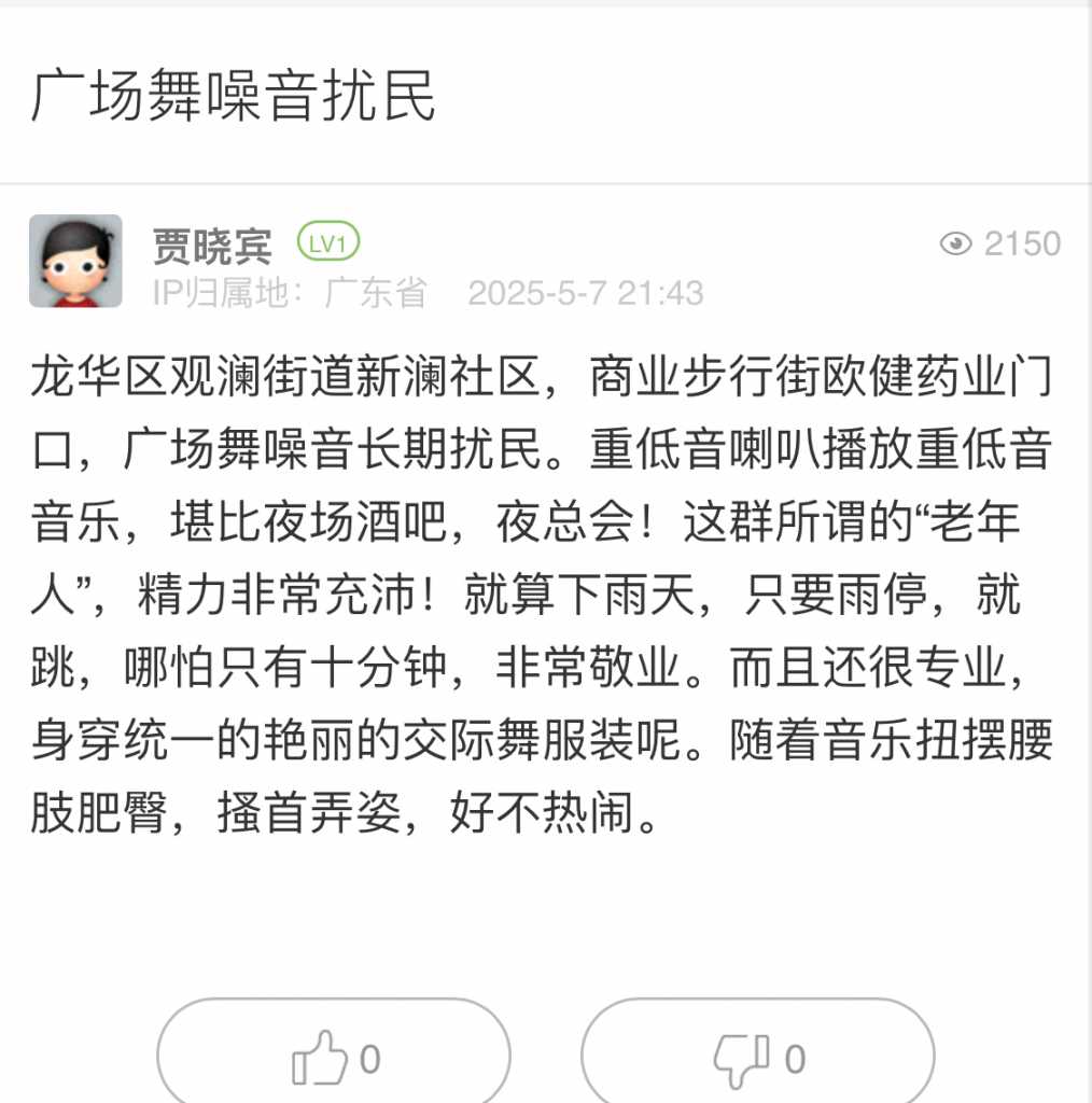 15. 帖文《廣場(chǎng)舞噪音擾民》