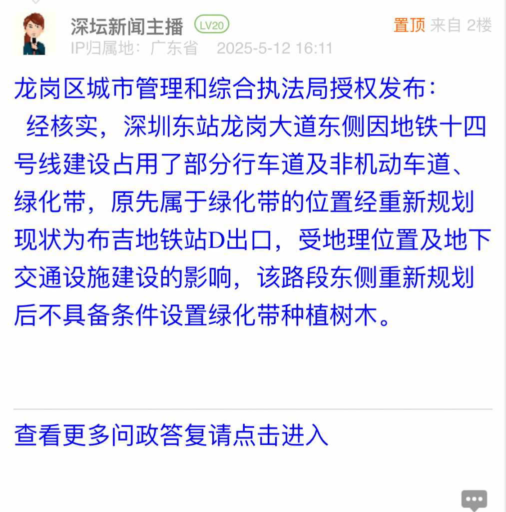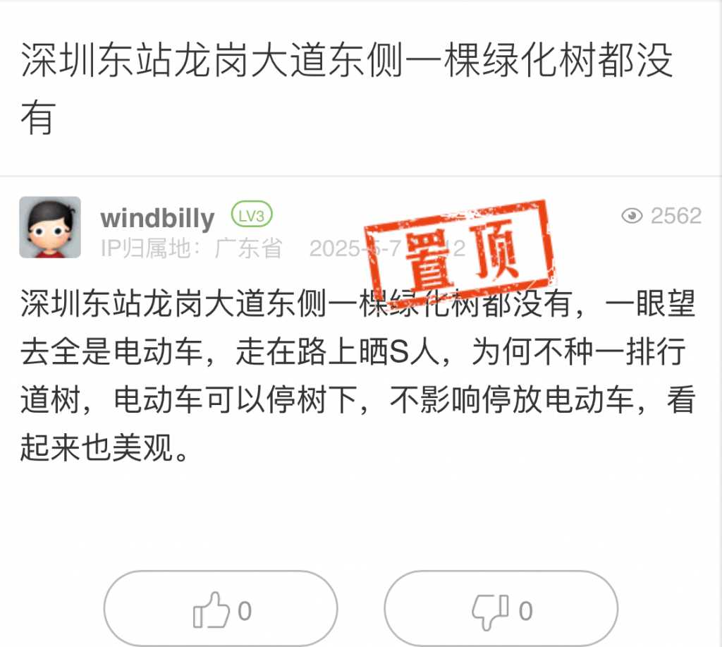 14. 帖文《深圳東站龍崗大道東側(cè)一棵綠化樹都沒有》