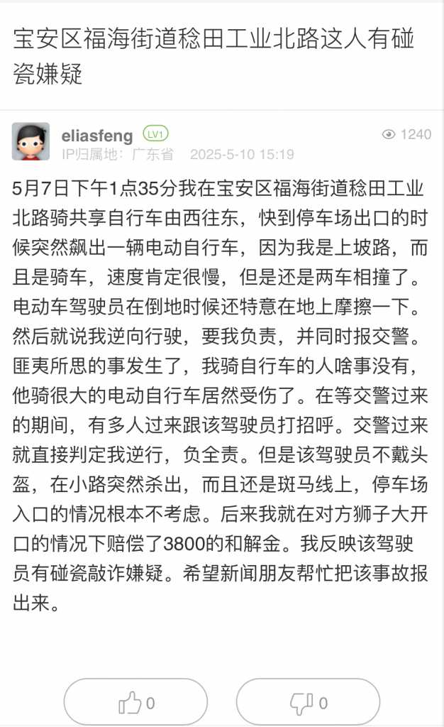 23. 帖文《寶安區(qū)福海街道稔田工業(yè)北路這人有碰瓷嫌疑》
