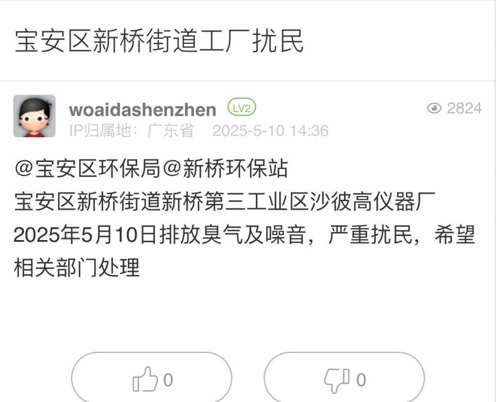 22. 帖文《寶安區(qū)新橋街道工廠擾民》