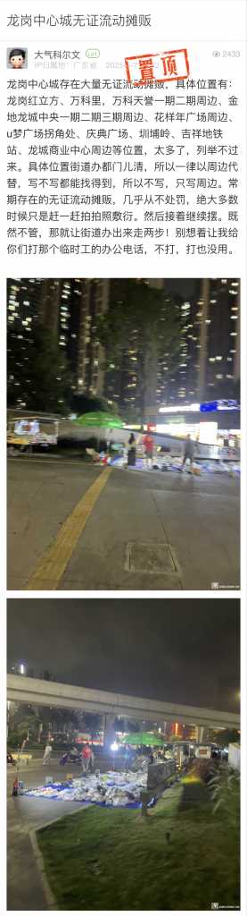 12. 帖文《龍崗中心城無證流動(dòng)攤販》