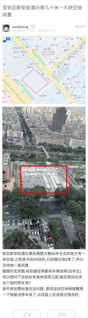 7. 帖文《寶安區(qū)新安街道辦旁幾十米一大塊空地閑置》