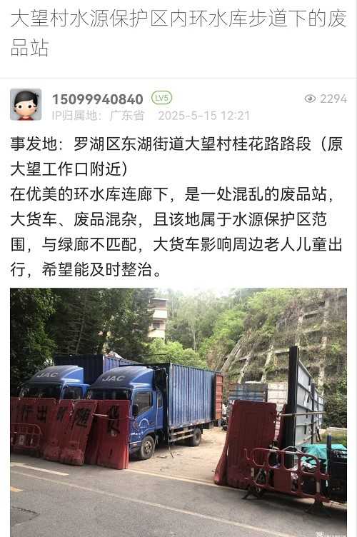 23. 帖文《大望村水源保護(hù)區(qū)內(nèi)環(huán)水庫步道下的廢品站》