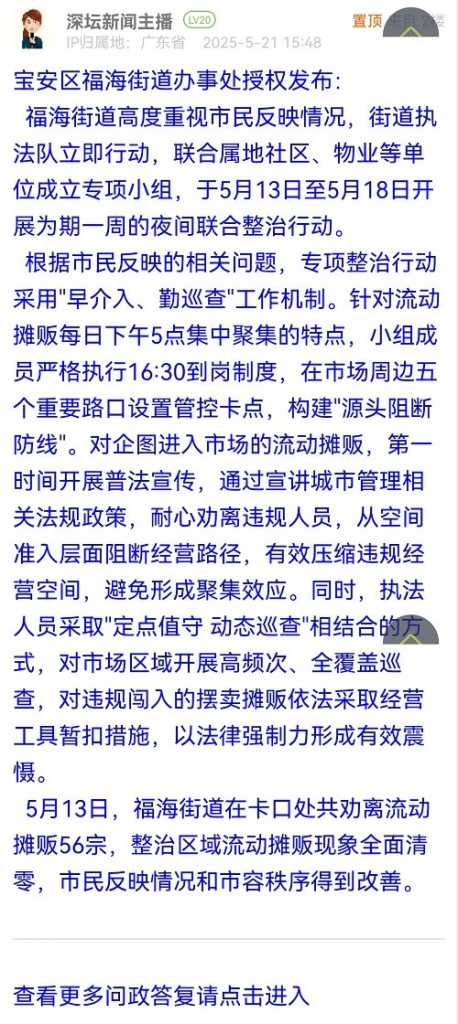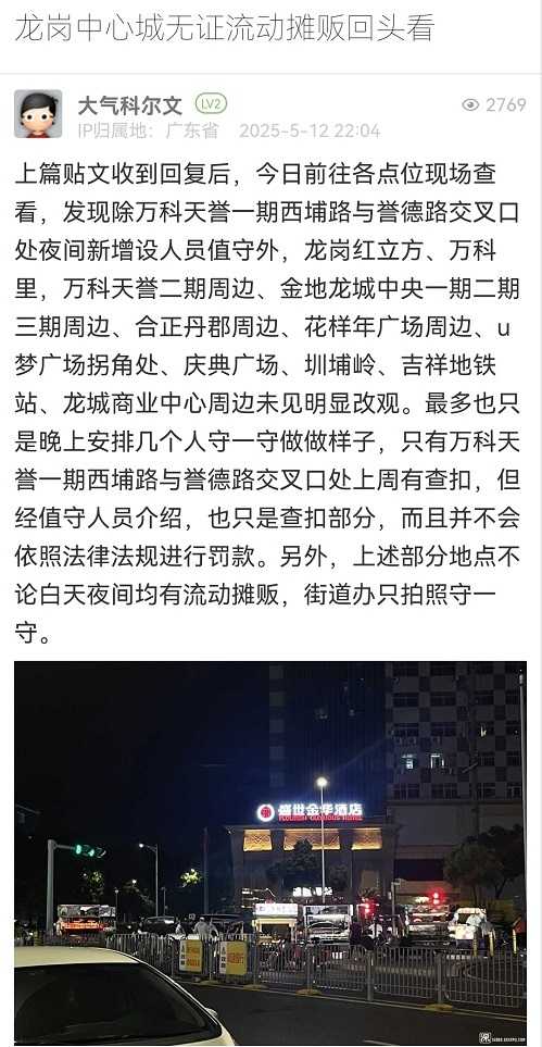 3. 帖文《龍崗中心城無證流動攤販回頭看》