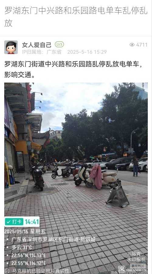15. 帖文《羅湖東門中興路和樂園路電單車亂停亂放》