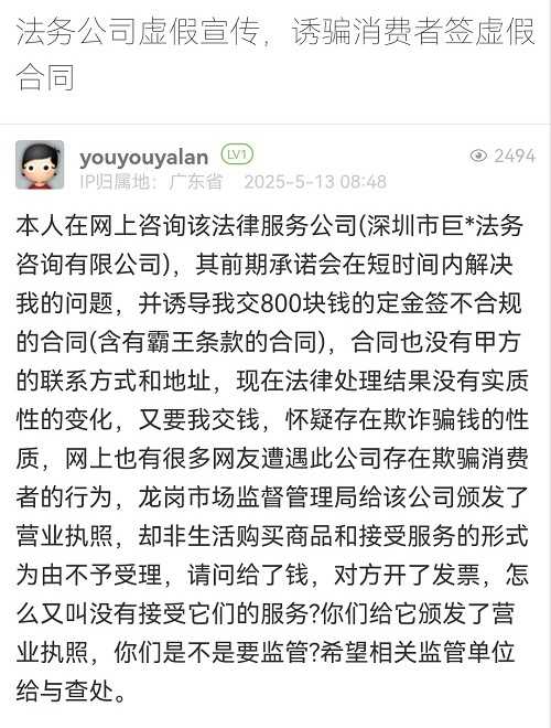 21. 帖文《法務(wù)公司虛假宣傳,誘騙消費(fèi)者簽虛假合同》