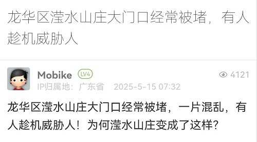 18. 帖文《龍華區(qū)瀅水山莊大門口經(jīng)常被堵,有人趁機(jī)威脅人》