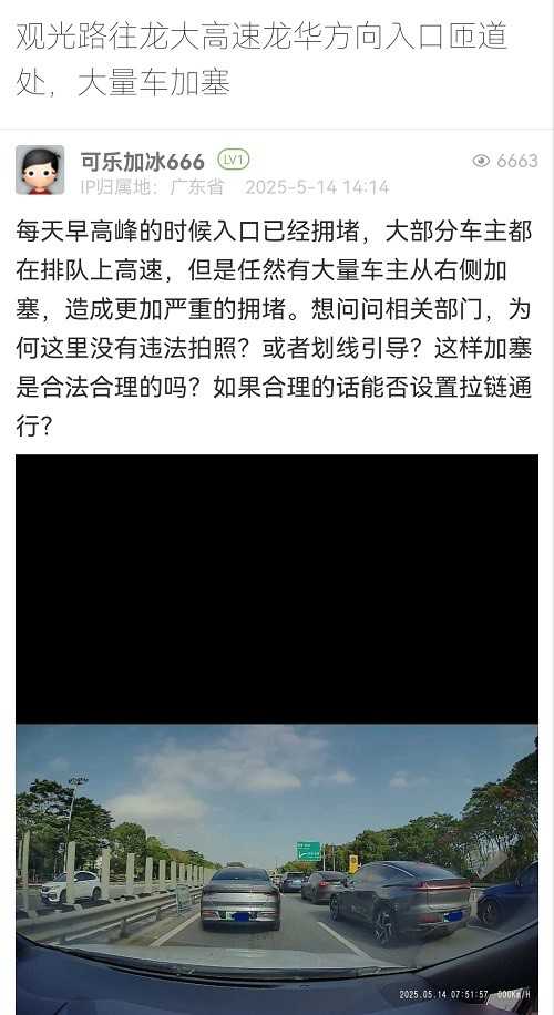 10. 帖文《觀光路往龍大高速龍華方向入口匝道處,大量車加塞》