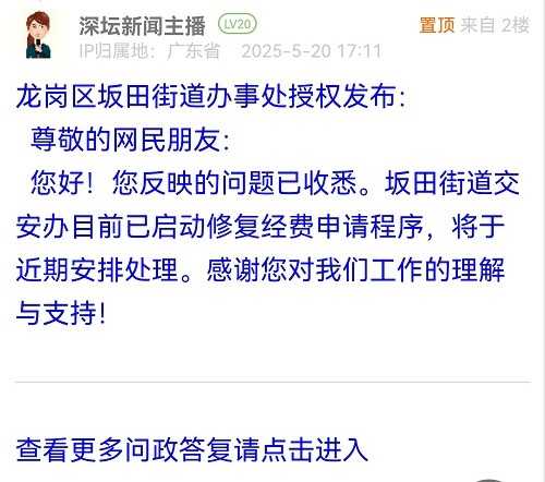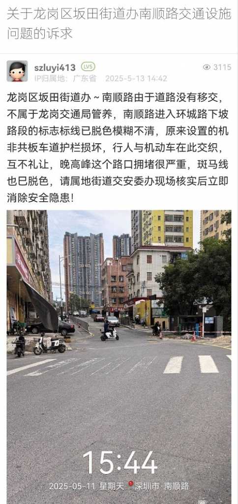 20. 帖文《關(guān)于龍崗區(qū)坂田街道辦南順路交通設(shè)施問題的訴求》