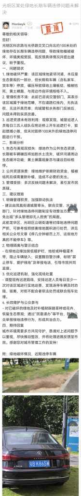 14. 帖文《光明區(qū)某處綠地長期車輛違停問題未解決》