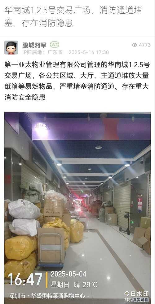 11. 帖文《華南城1.2.5號交易廣場,消防通道堵塞,存在消防隱患》