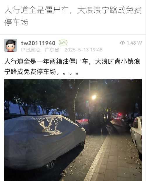 7. 帖文《人行道全是僵尸車,大浪浪寧路成免費(fèi)停車場》
