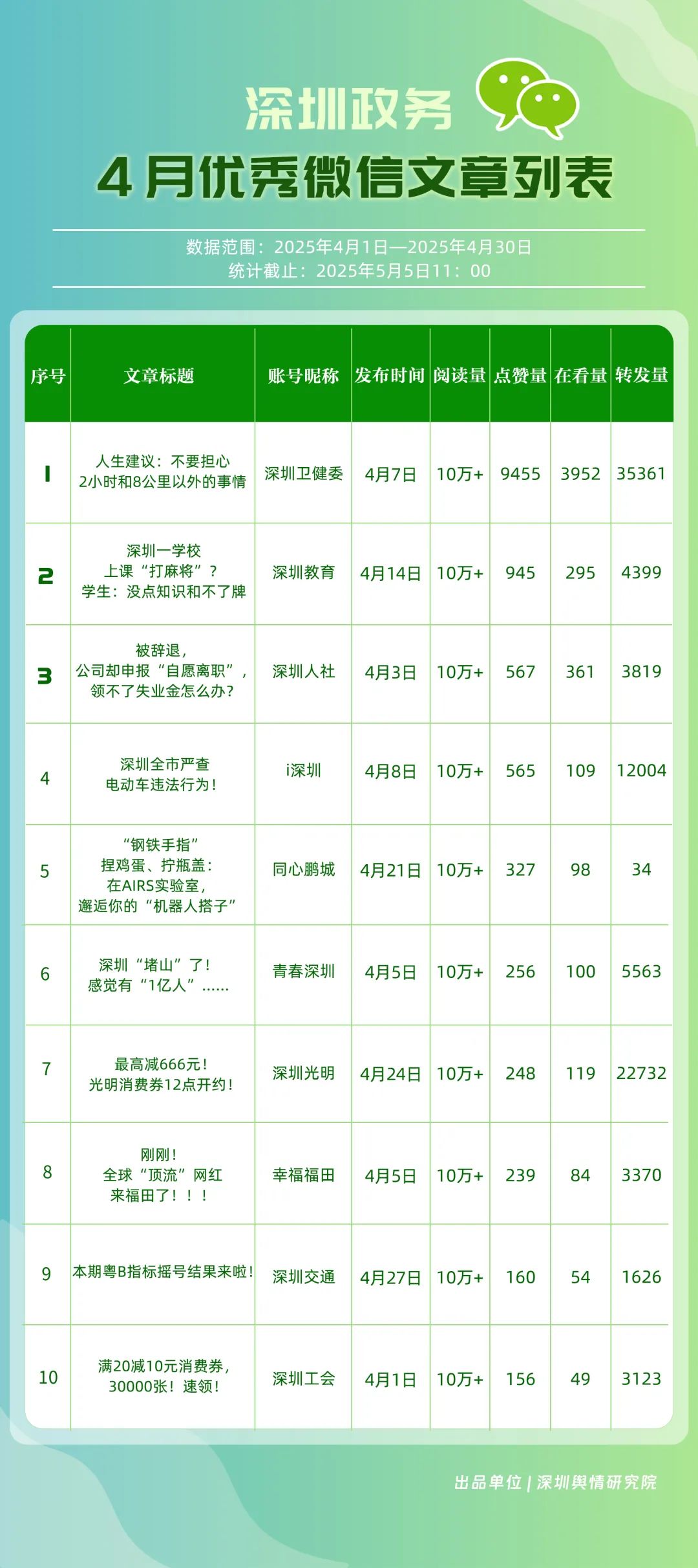 四、4月深圳優(yōu)秀政務(wù)新媒體賬號(hào)