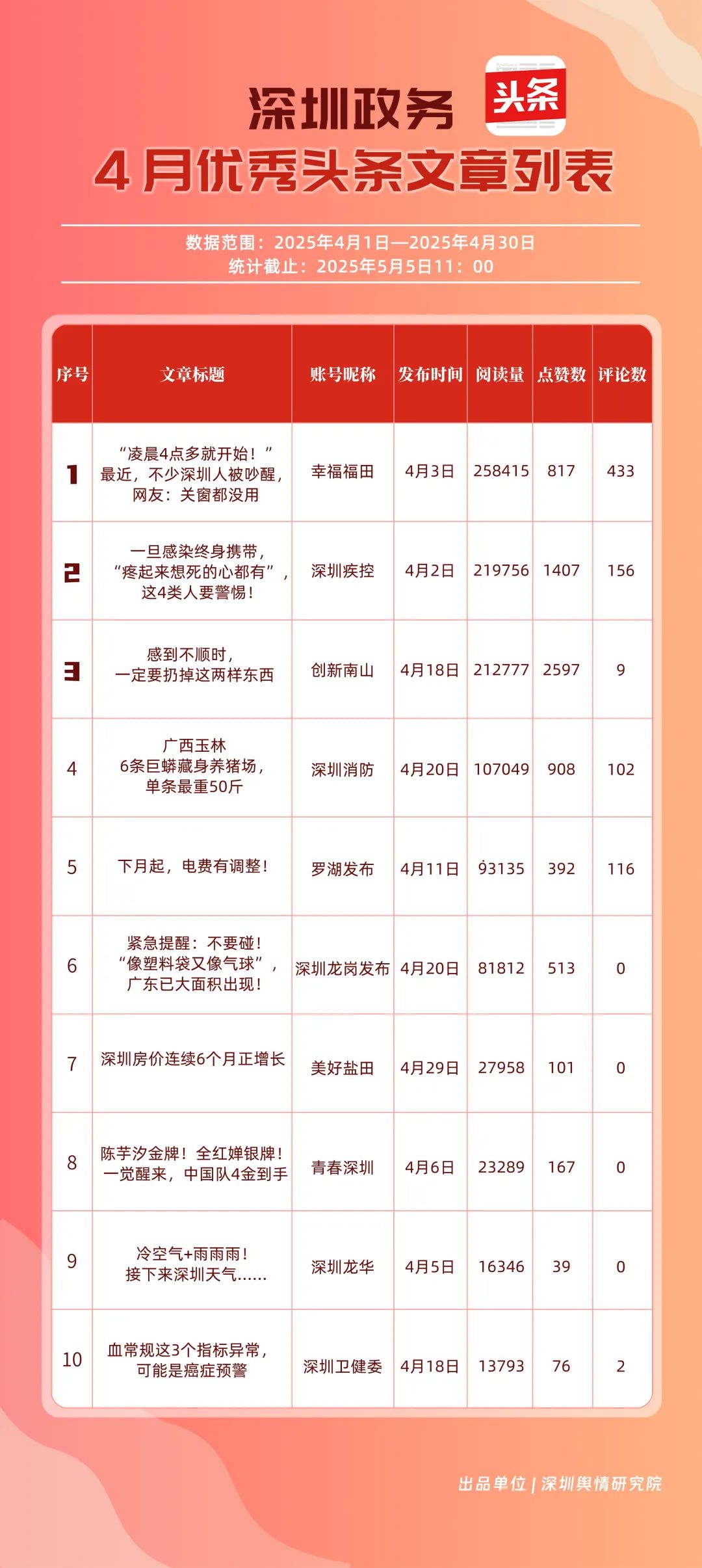 2025年4月期《深圳優(yōu)秀政務(wù)新媒體矩陣》發(fā)布,讓我們共同關(guān)注哪些矩陣以精準(zhǔn)傳播、智慧服務(wù)與創(chuàng)新實(shí)踐,在政務(wù)新媒體領(lǐng)域打造出具有示范價(jià)值的標(biāo)桿案例,以矩陣合力構(gòu)建政務(wù)傳播新生態(tài),為深圳城市網(wǎng)絡(luò)形象塑造持續(xù)注入新動(dòng)能。