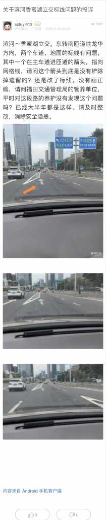 8. 帖文《關(guān)于濱河香蜜湖立交標(biāo)線問題的投訴》