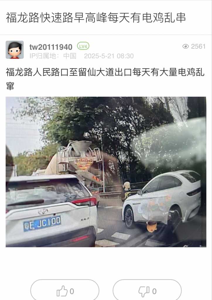15. 帖文《福龍路快速路早高峰每天有電雞亂串》