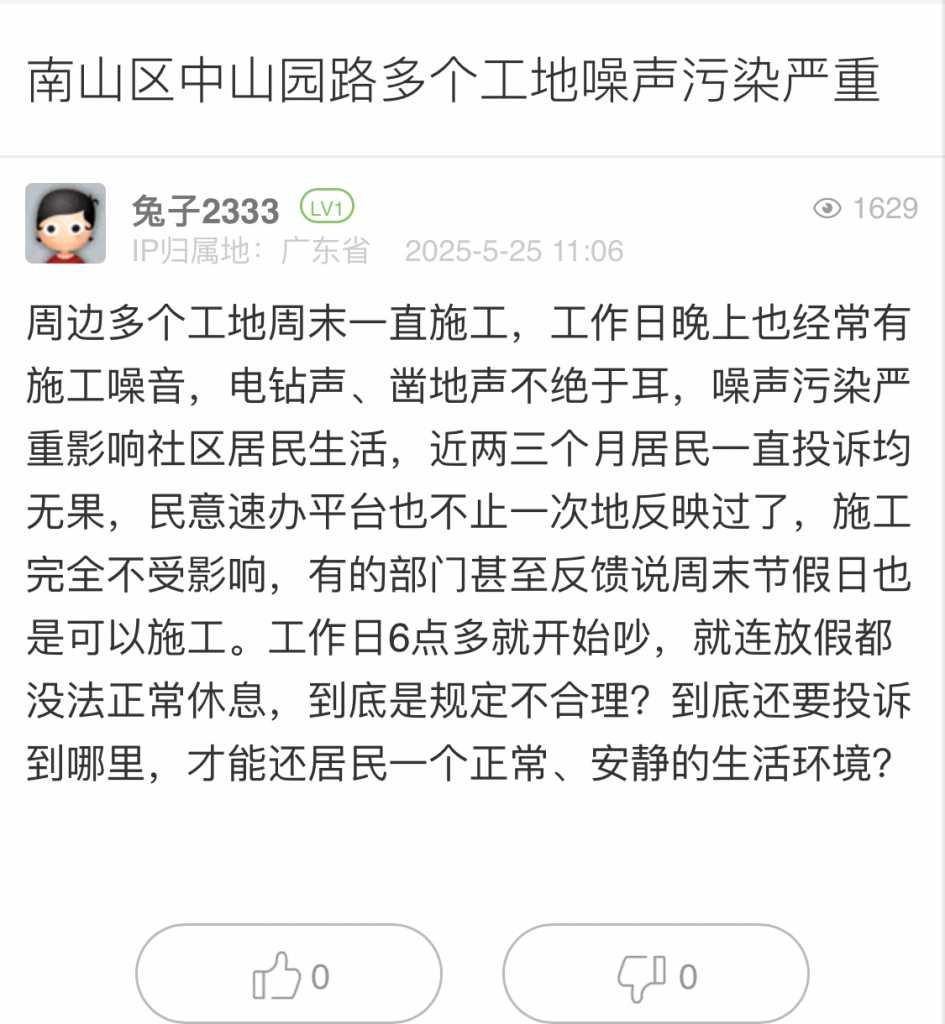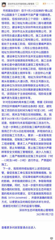 24. 帖文《南山區(qū)中山園路多個(gè)工地噪聲污染嚴(yán)重》