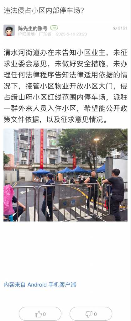 7. 帖文《違法侵占小區(qū)內(nèi)部停車場?》