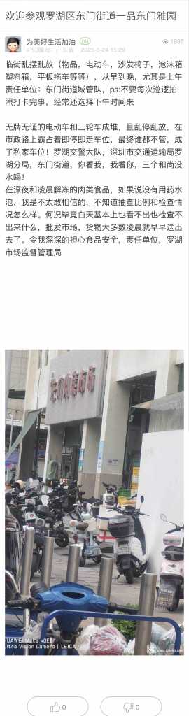 28. 帖文《歡迎參觀羅湖區(qū)東門街道一品東門雅園》《東門街道168路菜市場周邊烏煙瘴氣》