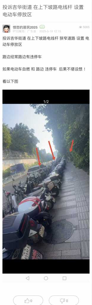 3. 帖文《投訴吉華街道 在上下坡路電線桿 設(shè)置 電動車停放區(qū)》