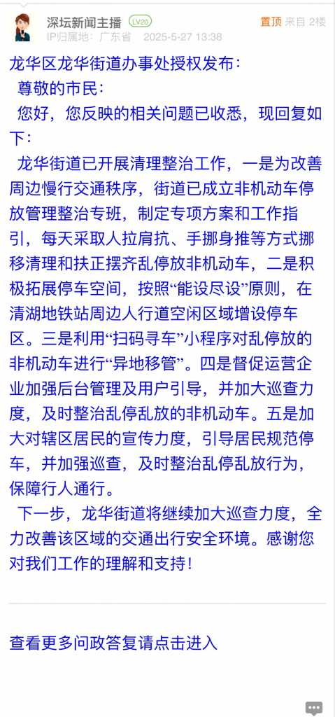 下一步,龍華街道將繼續(xù)加大巡查力度,全力改善該區(qū)域的交通出行安全環(huán)境。感謝您對我們工作的理解和支持!