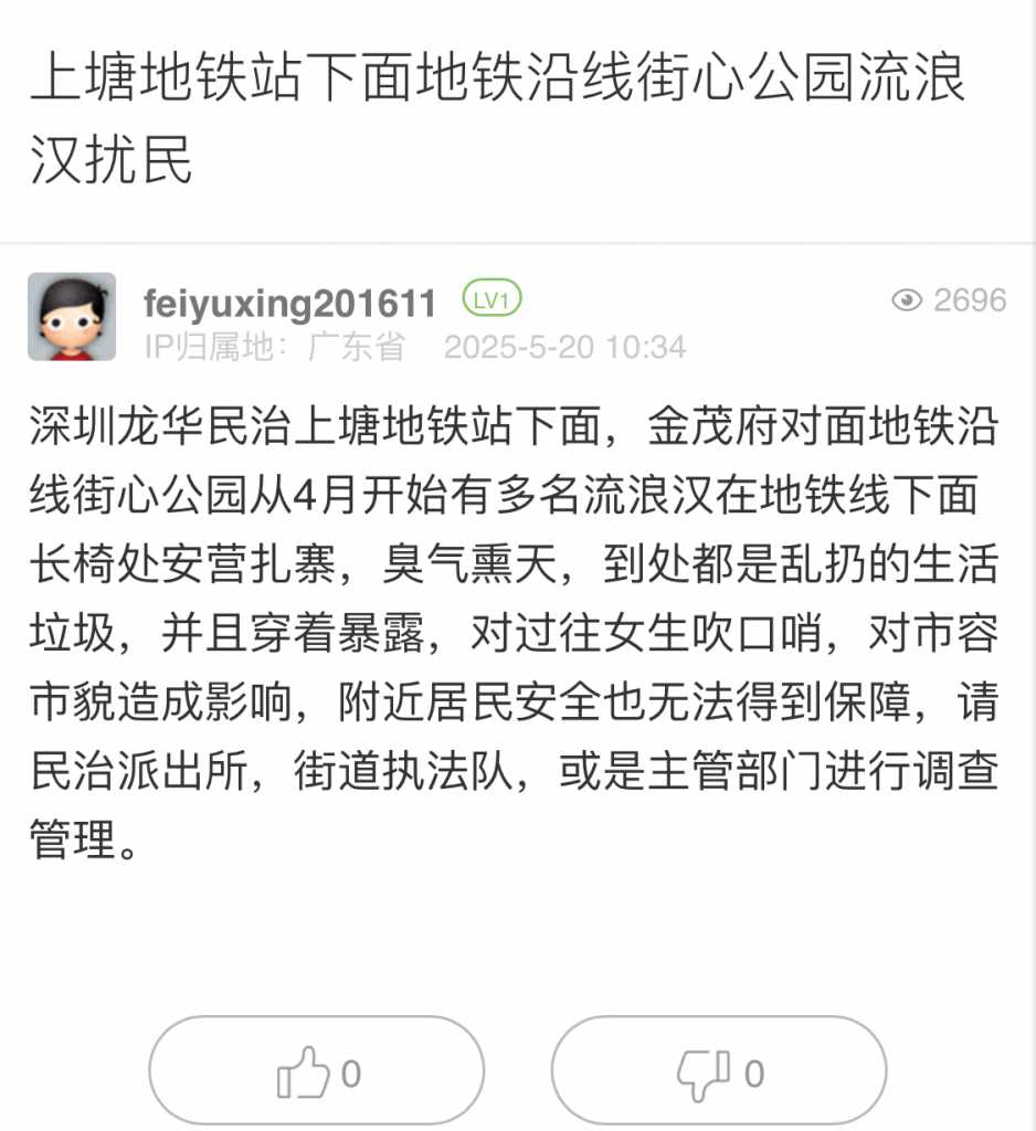 12. 帖文《上塘地鐵站下面地鐵沿線街心公園流浪漢擾民》