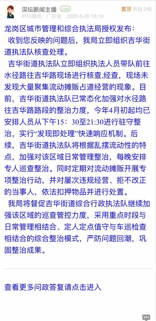 收到您反映的問題后,我局立即組織吉華街道執(zhí)法隊(duì)核查處理。