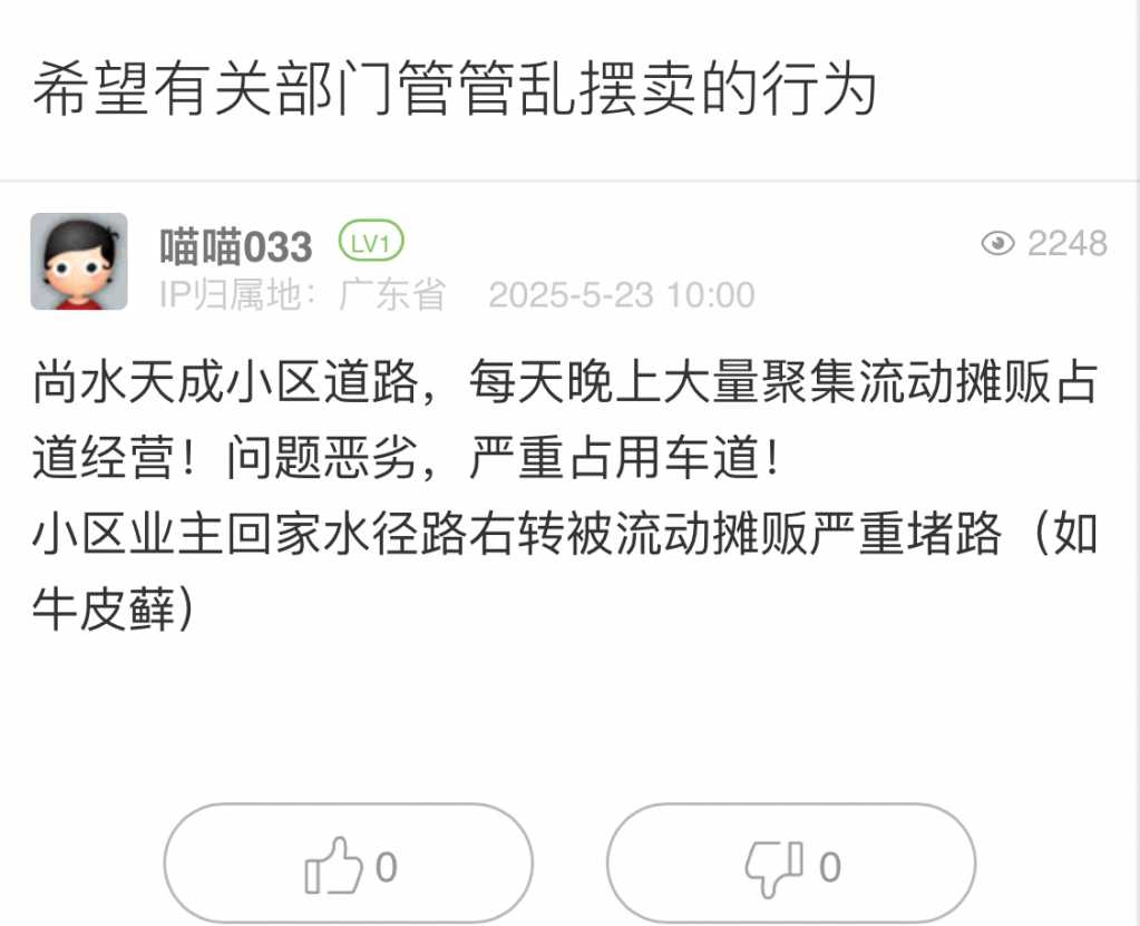 20. 帖文《希望有關(guān)部門管管亂擺賣的行為》