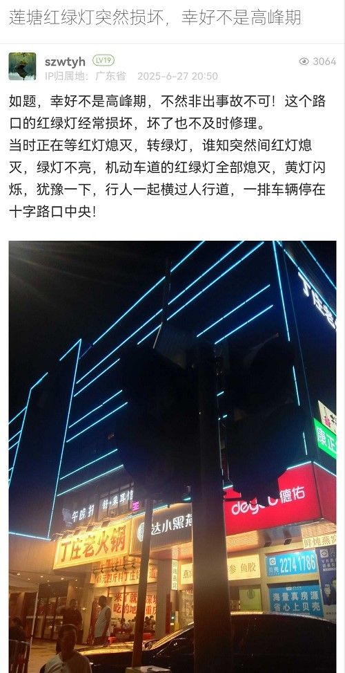 17. 帖文《蓮塘紅綠燈突然損壞,幸好不是高峰期》