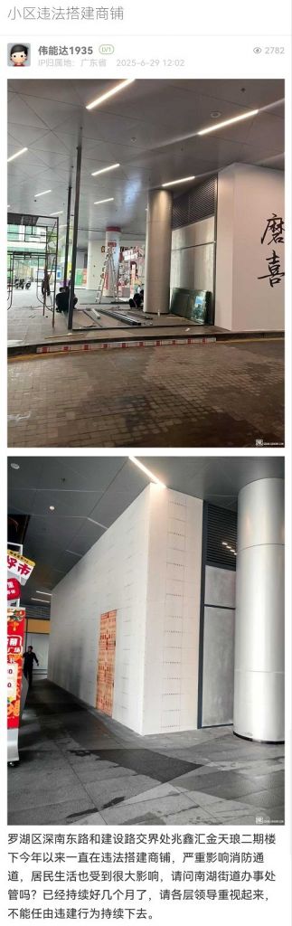 10. 帖文《投訴羅湖區(qū)蓮塘街道國威路與仙湖路交匯處長期明顯違建?。ㄎ澹?/a>》