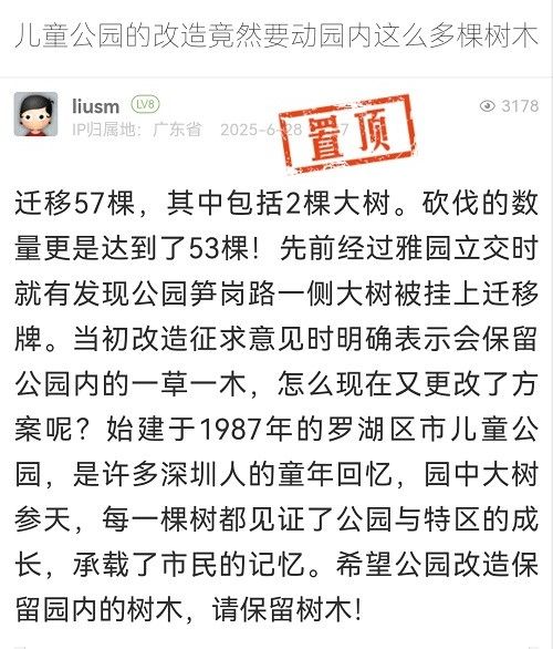 20. 帖文《兒童公園的改造竟然要動園內(nèi)這么多棵樹木》