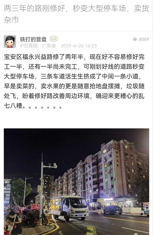 12. 帖文《兩三年的路剛修好,秒變大型停車場,賣貨雜市》