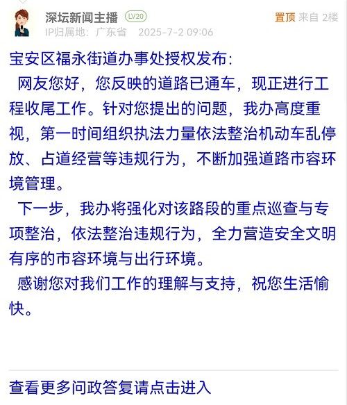 各職能單位如需對網(wǎng)友反映的問題進行回應(yīng),可在深圳論壇注冊官方賬號并通過認(rèn)證,回帖進行回應(yīng)。