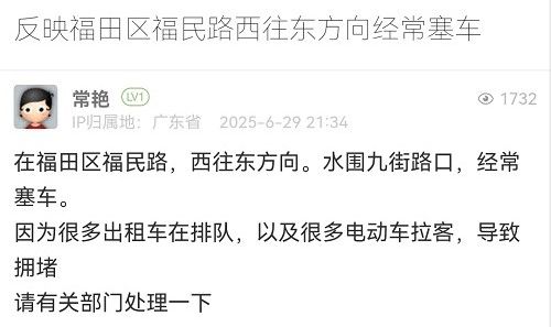 24. 帖文《反映福田區(qū)福民路西往東方向經(jīng)常塞車》