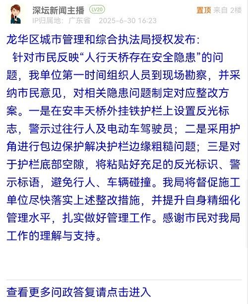 16. 帖文《龍華城管局速看,這座天橋的 “缺口” 誰來填補?》