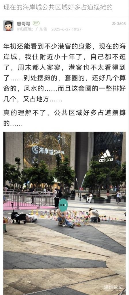 26. 帖文《現(xiàn)在的海岸城公共區(qū)域好多占道擺攤的》